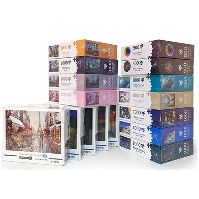 This is most popular packaging for puzzle, can custom any printing and shape. and cheap price.